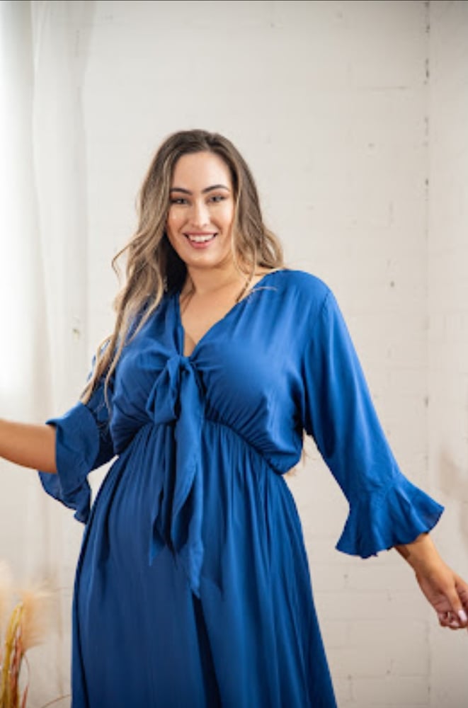 Arielle Tie Front Midi Dress. Cobolt. Dani Marie the Label.